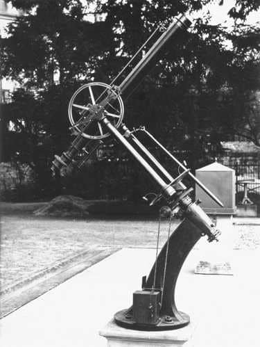 In 1816 was born the Swiss astronomer Rudolf Wolf, known for having introduced the relative number of wolf [R=K x (10G+M)] in 1848 to determine an estimate of solar activity. Particularly dedicated to the study of sunspots, he collected their observations from the time of Galileo. In the photo we see the Fraunhofer 83/1320 mm refractor, on the terrace of the astronomical observatory in Zurich in 1880, which Rudolf Wolf used for his observations.