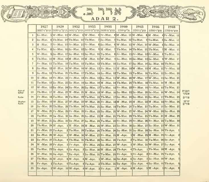 In 3761 BC. first day of the Jewish calendar, which is lunisolar, i.e. calculated on both a solar and lunar basis. The year is made up of 12 or 13 months which in turn are made up of 29 or 30 days.