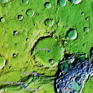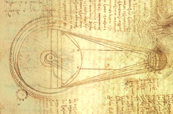 ? Nel campo dell’astronomia ebbe intuizioni fondamentali, come sul calore del Sole, sullo scintillio delle stelle, sulla Terra, sulla Luna, sulla centralità del Sole con conseguenti e scontate complicazioni… Anche se la legge di gravitazione non era ancora contemplata, Leonardo già paragonava i pianeti a calamite che si attraggono tra loro, spiegando così il concetto di attrazione gravitazionale. Si dice che la tecnica dello sfumato nelle sue opere gli venne ispirata dalla luce cinerea della Luna (fenomeno di riflessione multipla della luce solare la quale, dopo aver investito la Terra, in piccola parte raggiunge il nostro satellite, per poi essere nuovamente riflessa dalla Luna sulla Terra). A Leonardo vennero dedicati due crateri, uno lunare e uno marziano (vedi foto del cratere su Marte)