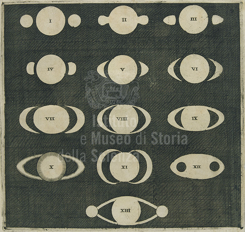 In 1633, the oldest drawing of Saturn was made by the French philosopher and scientist Pierre Gassendi (see image), although it, together with his other drawings, was only published in 1658 (in order to be fair, we must mention Galileo Galilei who “designed” tricorporeal Saturn in a letter to Belisario Vinta dated 30 July 1610 – BNCF, Ms. Gal. 86, c. 42v see image). The resolving power of the telescope was of the order of 10 ″. Instead, to distinguish significant details of the planet, telescopes with a resolving power of at least 5″ are needed. These instruments only began to appear in the mid-seventeenth century; one of them allowed Christiaan Huygens (1629-1695) to recognize the ring of Saturn, see image.
