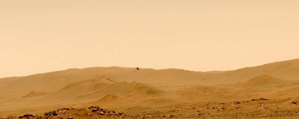 At 01:31 in 2021 was the fifth flight of the Ingenuity helicopter to Mars (see photo above) with its first one-way trip from Wright Brothers Field to an airfield 129 meters to the south. Upon arriving above its new airfield, Ingenuity climbed up to 10 meters and captured high-resolution color images of its new base before landing. Among its objectives: aerial observations of areas not accessible by a rover and detailed stereo images from atmospheric altitudes. The flight started at 15:26. EDT (12:26 pm PDT, 12:33 pm Mars local time) and lasted 108 seconds. The Ingenuity team chose the new landing site based on information gathered during the previous flight – the first “aerial survey” operation on another world – which allowed them to generate digital elevation maps indicating almost completely flat terrain almost without obstacles. Videos: https://youtu.be/PFbzEM8PzHE…