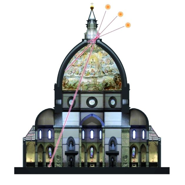 In 1482 Paolo Dal Pozzo Toscanelli, astronomer, cartographer and mathematician, died. He studied at the University of Padua. On 3 October 1453 he was consulted by the Signoria as an astrologer following the great earthquake of 28 September 1453. Toscanelli’s mathematical and astronomical works have almost all been lost. In 1468 Toscanelli had a gnomon installed in the church of S. Maria del Fiore in Florence that we see in the photo (it is said that he helped Brunelleschi with the calculations for the construction of the dome) to determine the variation of the inclination of the axis of rotation of the Earth on the plane of the orbit (fundamental for the calculation of the solar ephemeris). The height of the gnomon is such that the sun’s rays, passing through the hole, strike the floor of the church only from the end of May to the end of July and for a few minutes before and after noon. His observations of comets are the first we know of: he determined many positions of the comets of 1433, 1449-1450, 1456 (later called Halley…), 1457 and 1472, tracing their orbits on star maps he prepared. Toscanelli exerted a decisive influence on Colombo’s decision to set sail in search of the East Indies by sailing westward: we report the hypothetical reconstruction, in cylindrical projection, of the map sent by Paolo dal Pozzo Toscanelli to Christopher Columbus. The asteroid 8209 Toscanelli, a crater on the Moon with a diameter of 7 km and also on the Moon a chain of mountains 70 km long, the Rupes Toscanelli, were dedicated to him.