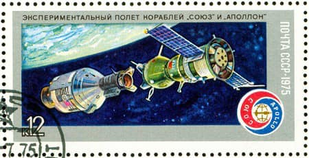 In 1975 for the Apollo-Soyuz project: an American Apollo shuttle and a Soviet Soyuz dock in orbit, marking the first docking between spacecraft of two different nations. Read also the bulletin of July 15th. Nasa video 35 sec: https://youtu.be/es7Br9kJBbo