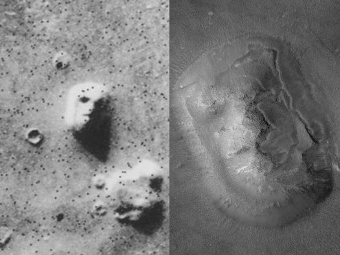 Nel 1976 la NASA pubblica la famosa foto della Faccia su Marte, scattata dalla sonda Viking 1 sei giorni prima. A destra la stessa zona ripresa tra il 1998-2001 dalla sonda Mars Global Surveyor ESA!