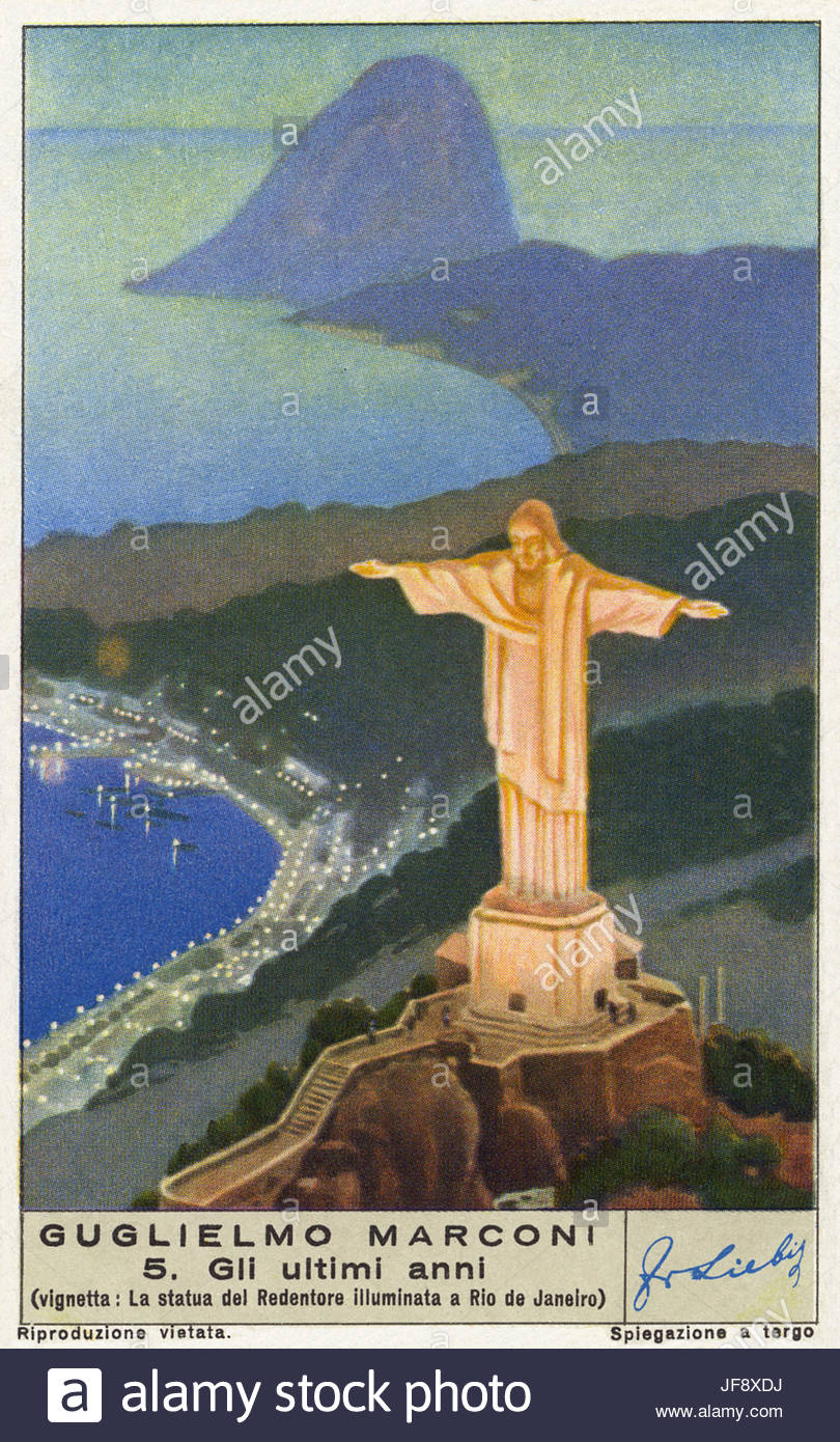In 1931 Guglielmo Marconi from Rome sent the radio signal that illuminated Christ the Redeemer in Rio de Janeiro through the Coltano transmitters (see stamp), as a demonstration of the reliability and importance of intercontinental radio communications.