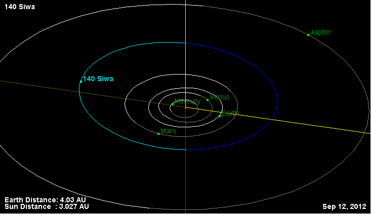 Nel 1874 l’astronomo Johann Palisa scopre l’asteroide 1948 AL e lo battezza 140 Siwa, un grande e scuro asteroide della fascia principale; possiede una curva di luce molta piatta, che indicherebbe un corpo pressoché sferico. La sua composizione è quella di una asteroide di tipo P (o probabilmente di tipo C), la classificazione spettrale la si può vedere qui: https://it.m.wikipedia.org/…/Classificazione_spettrale…