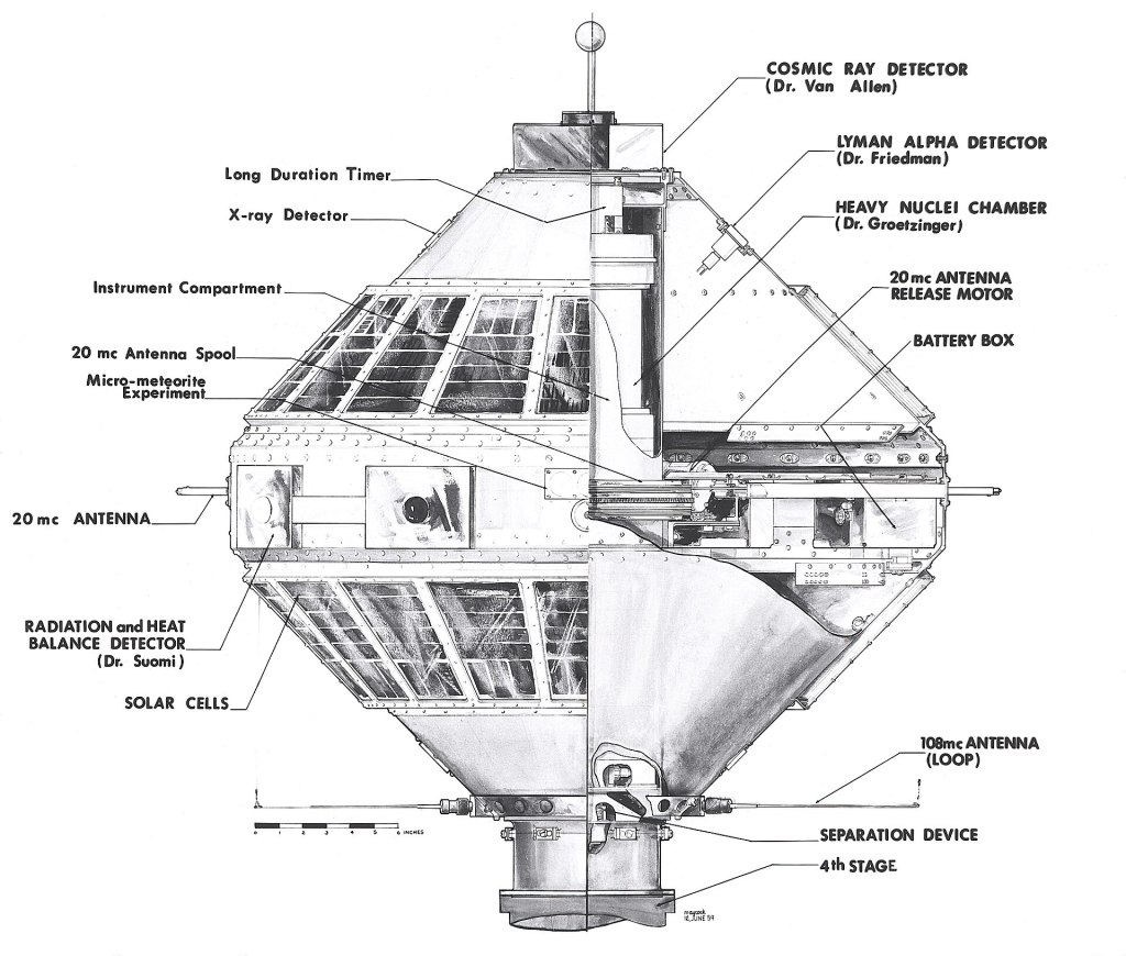 Nel 1959 lancio dell’Explorer 7 (vedi foto) per studiare raggi X solari, del flusso Lyman-alpha, delle particelle energetiche e dei raggi cosmici.