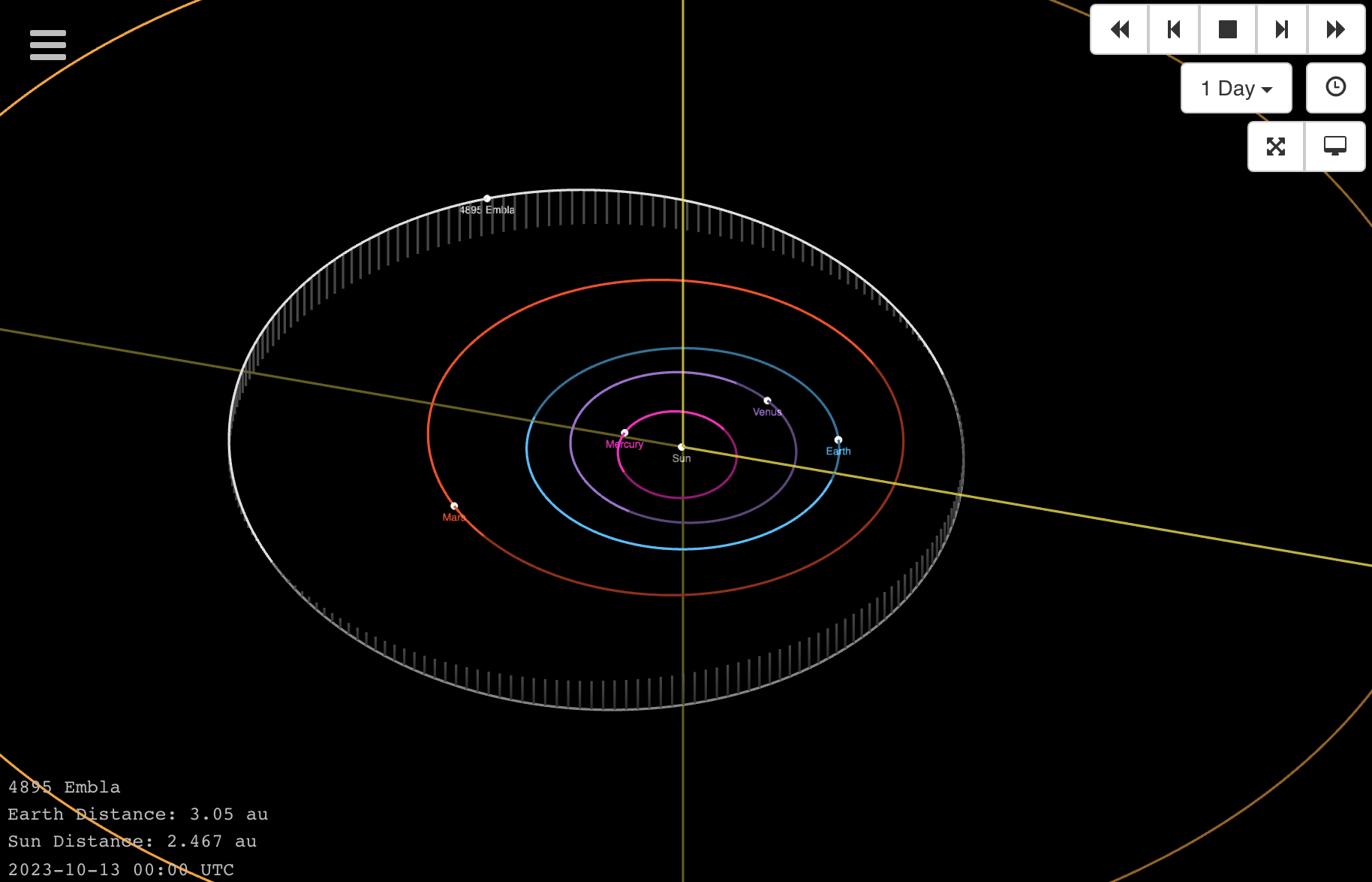 Nel 1986 Poul Jensen scopre l’asteroide 1986 TK4 della fascia principale e lo battezza “4895 Embla”. Teniamolo d’occhio: https://ssd.jpl.nasa.gov/tools/sbdb_lookup.html#/?sstr=4895&view=VOP