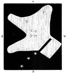 In 1792 the French astronomer Guillaume Le Gentil de la Galaisiere died, known above all for his adventurous and unfortunate story of a never-observed transit of Venus over the Sun. However, he was also responsible for the discovery of Messier objects M32, M36 and M38, as well as the nebula in M8, and he was the first to catalog the dark nebula also called Le Gentil 3 (in the constellation Cygnus). In the image we see the Orion Nebula drawn by Le Gentil in 1758.